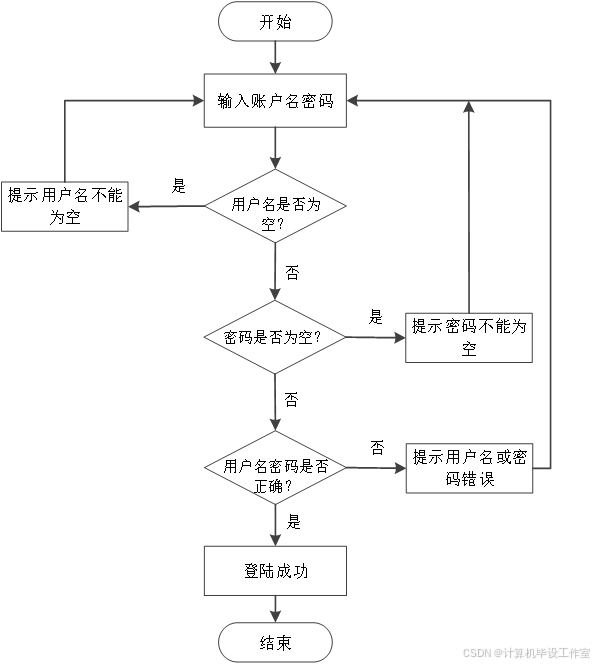 - 登录用户时输入多次不同的用户名、密码,如果不通过为测试通过。登录用户时输入的用户名不正确,如果出现提示为测试通过。