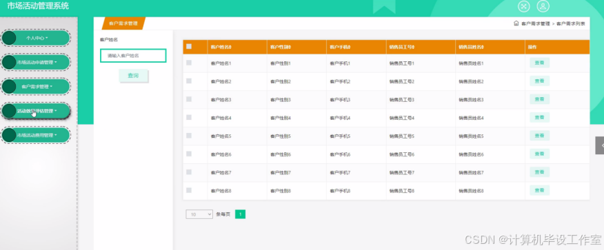 (3)为了销售员能够方便查看市场活动申请管理、客户需求管理、活动效果评估管理、市场活动费用管理功能。