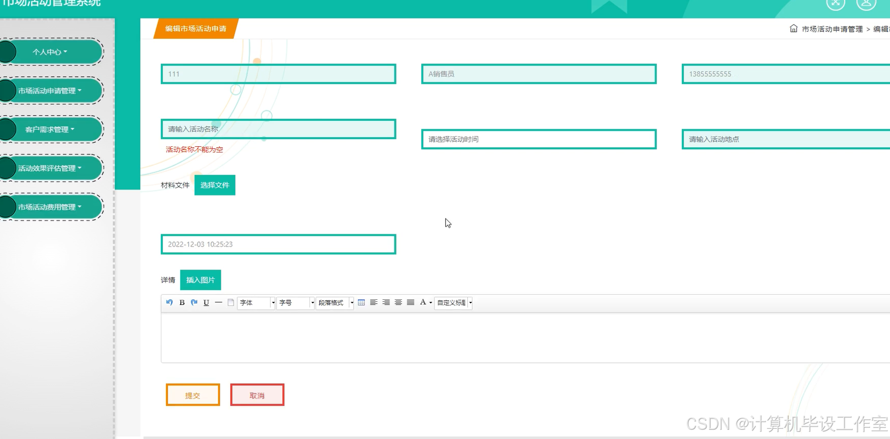 市场活动管理系统(源码+毕业论文+答辩ppt)java开发ssm框架javaweb项目,可做计算机毕业设计或课程设计
