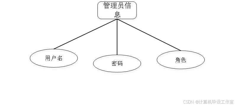 分析市场活动管理系统的数据结构后,在E-R图中分析管理员登录时的模式,需要输入用户名与密码、角色,管理员信息E-R如图4-2所示。