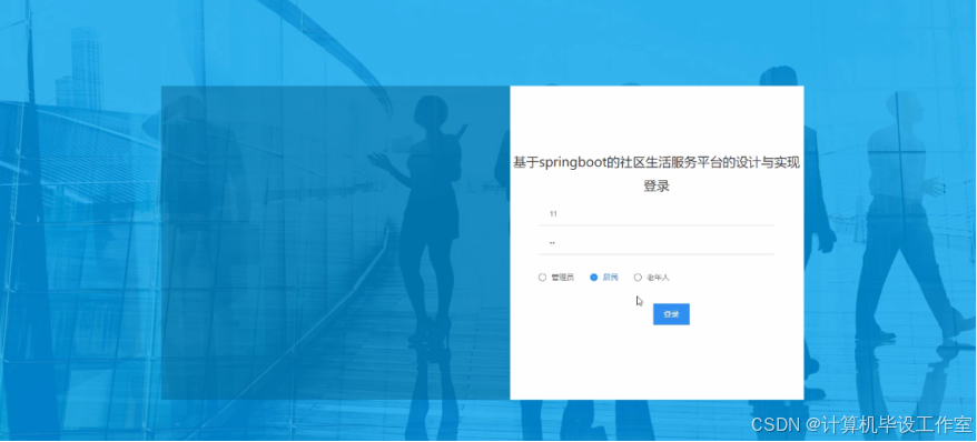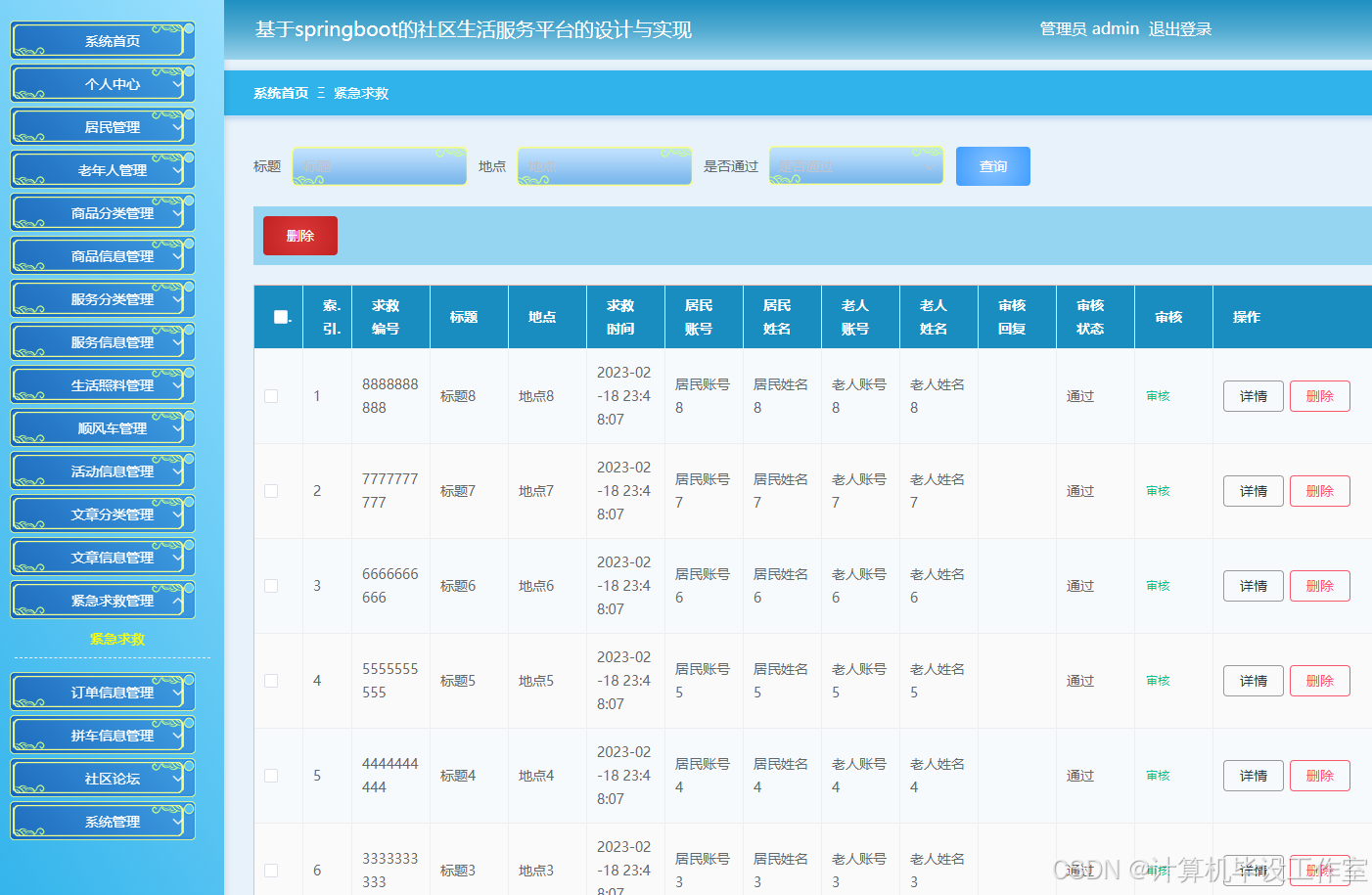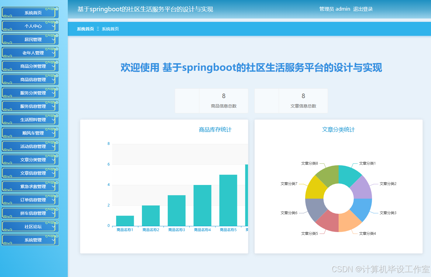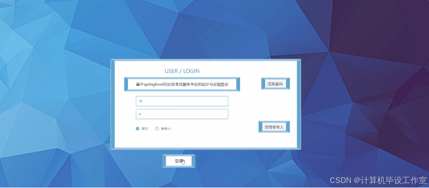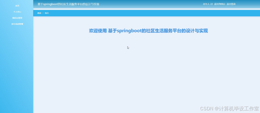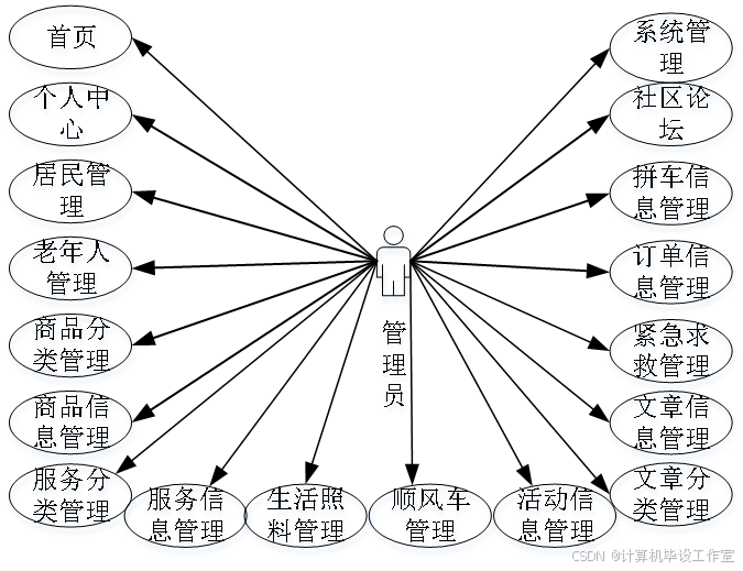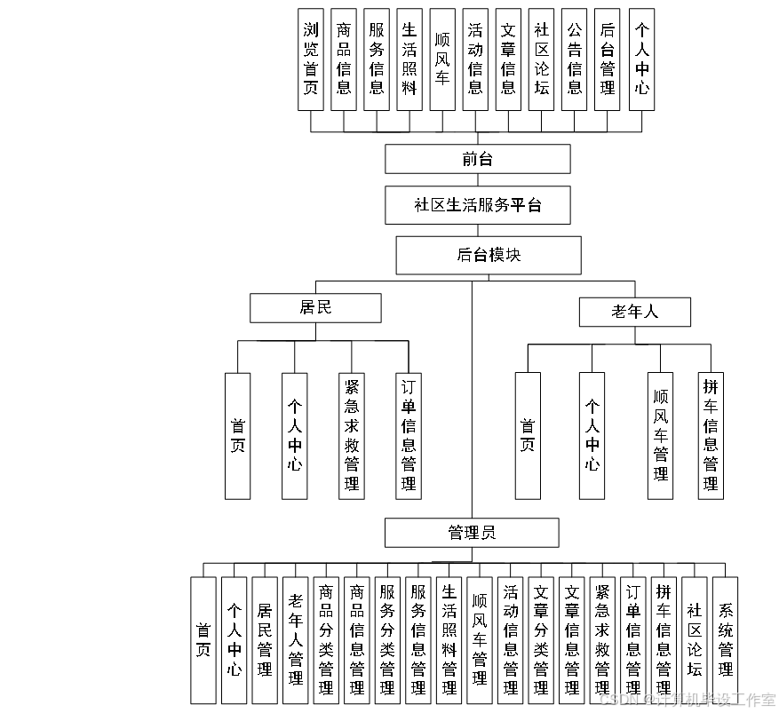 本课题要求实现一套社区生活服务平台,系统主要包括管理员模块和居民、老年人模块功能模块。