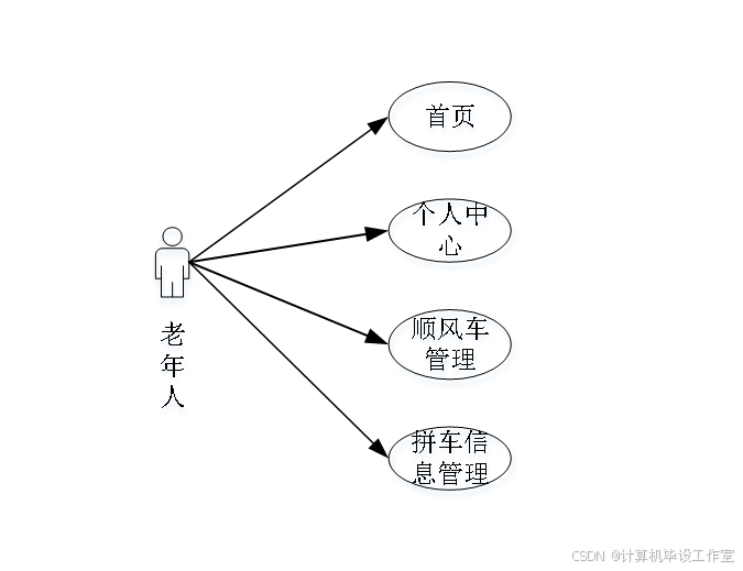 老年人登录系统后,可以对首页、个人中心、顺风车管理、拼车信息管理等功能进行相应操作,如图5-15所示。