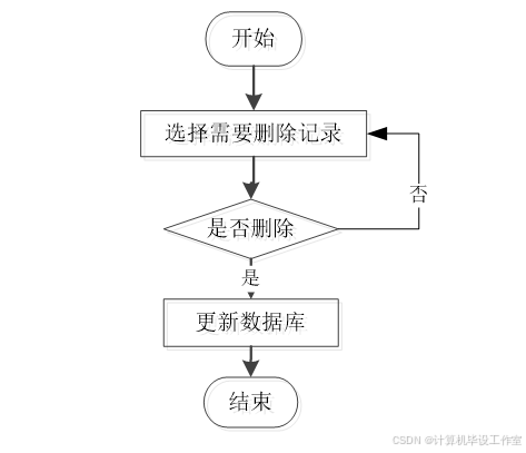 用户可选择要删除的信息进行信息删除操作,在删除信息时系统提示是否确定删除信息,是则删除信息成功,系统数据库将信息进行删除。删除信息流程图如图2-4所示。