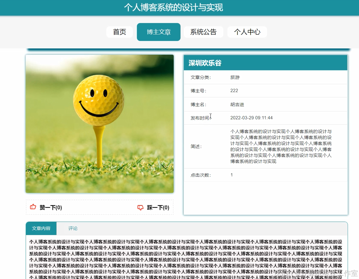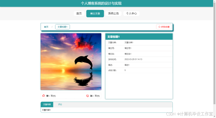 用户可以在博主文章里面查看到博主发布的文章信息,可以对博主文章信息进行查看,收藏,赞踩,评论操作。