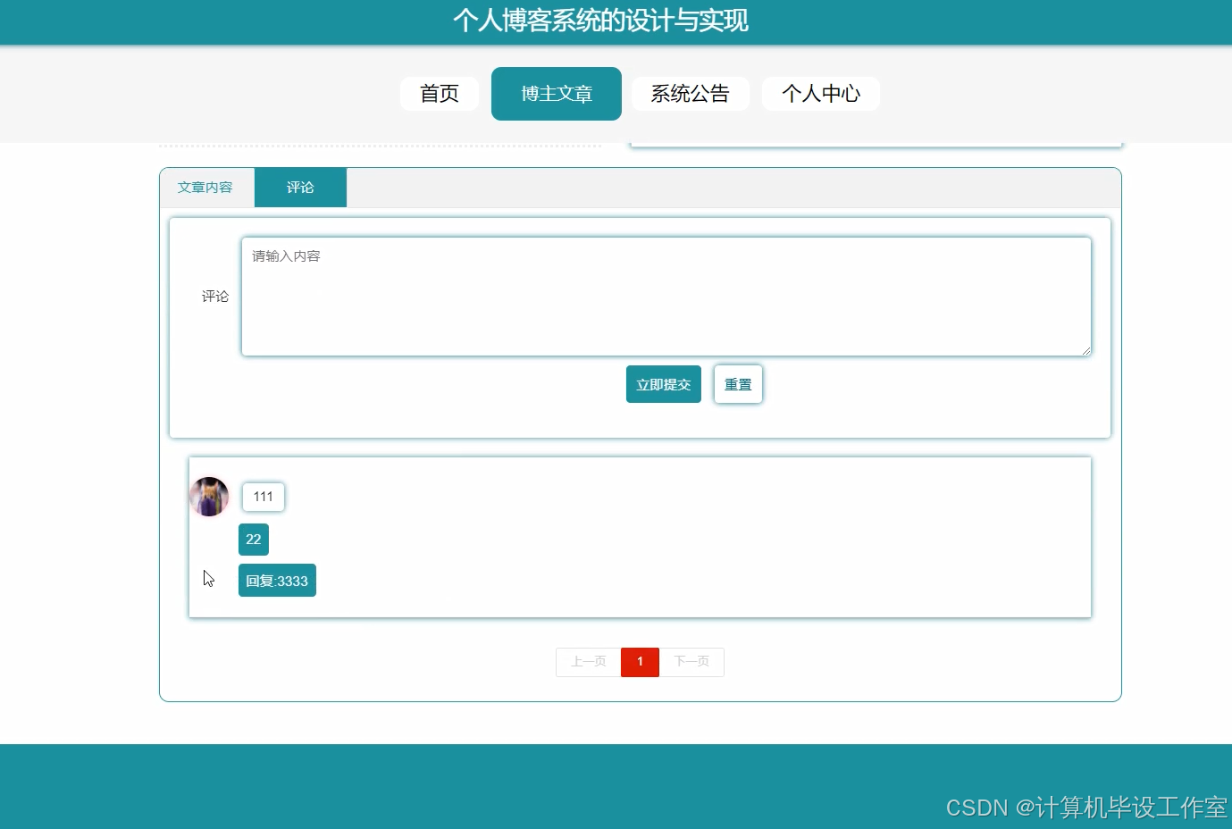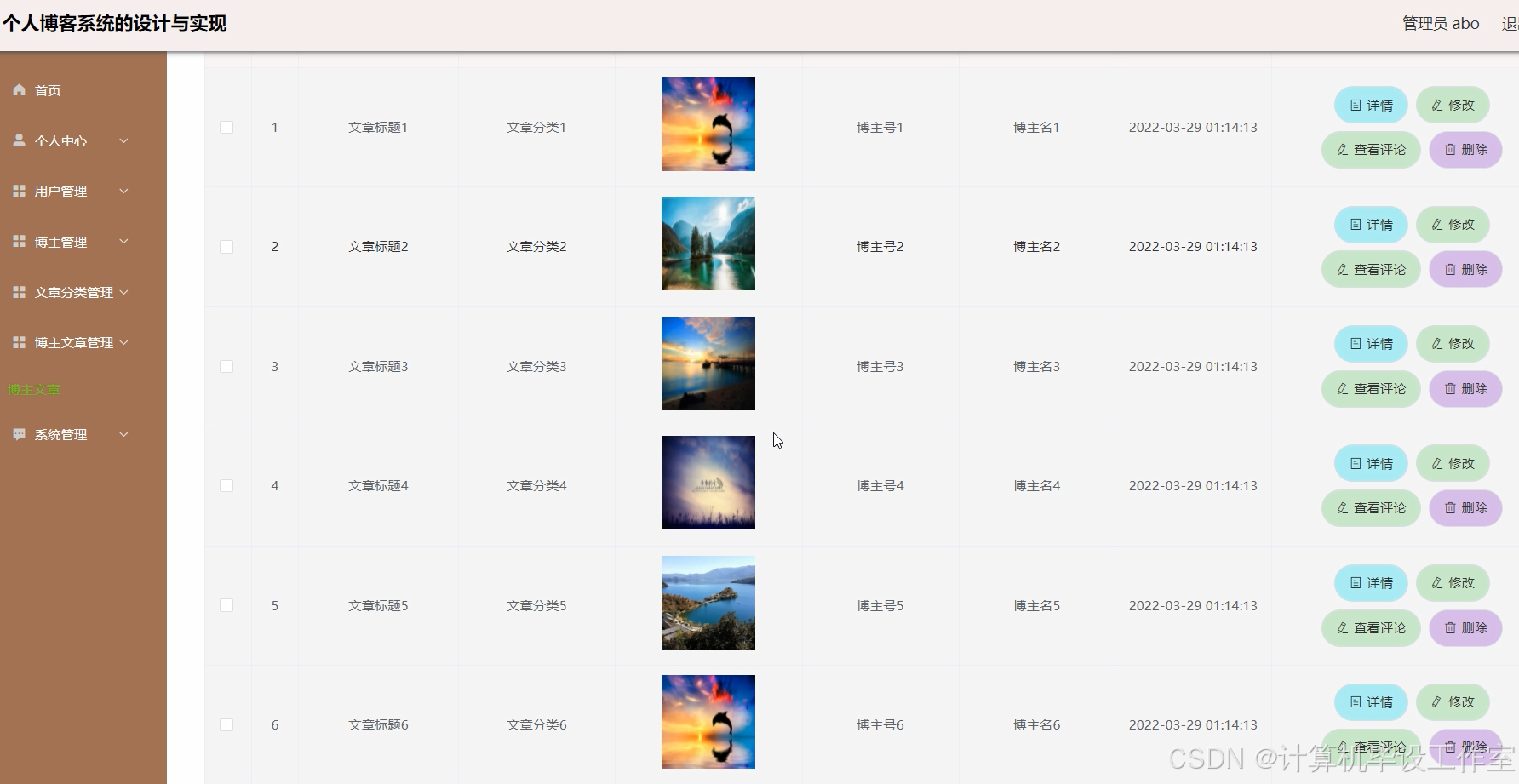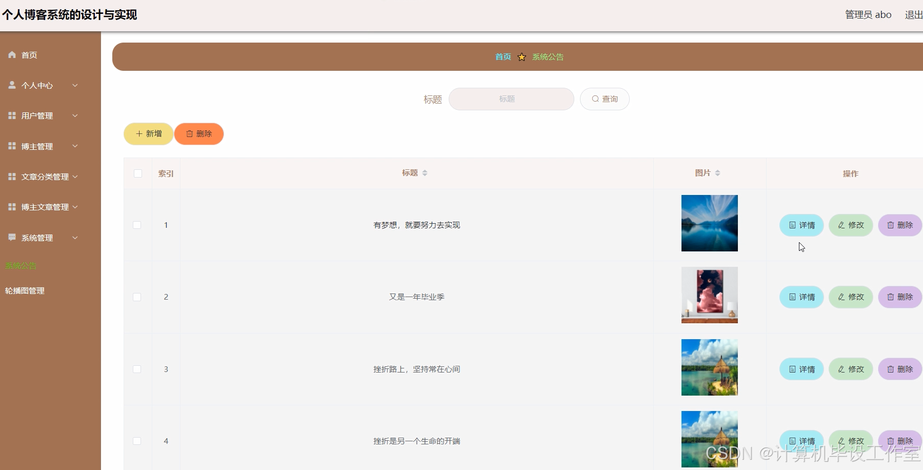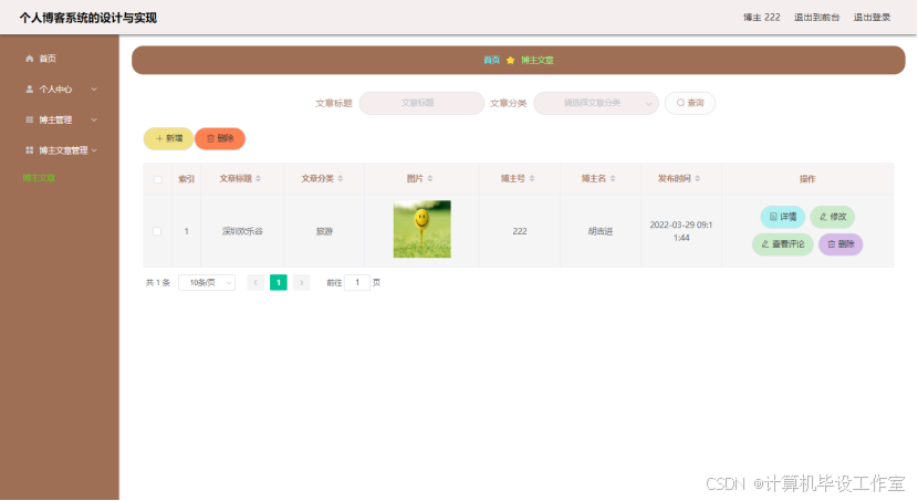 博主可以对自己发布过的博主文章信息进行添加,修改,删除,查询操作,还可以查看评论。