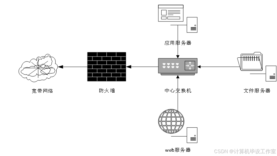本程序在设计结构选择上首选B/S,也是为了满足程序今后升级便利,以及程序低维护成本的要求。本程序的网络拓扑设计也会在下图展示,通过图形的方式来描述更容易理解。