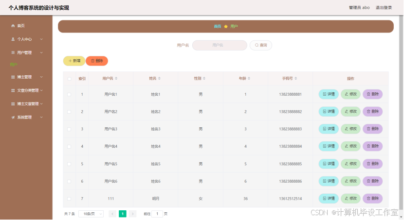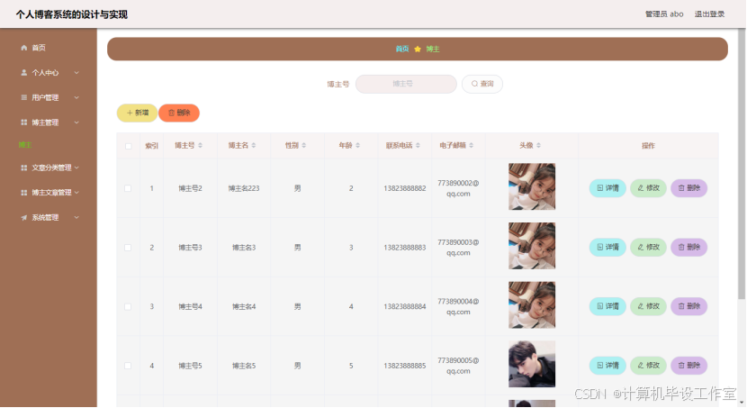 管理员可以对博主信息信息进行添加,修改,删除,查询操作。
