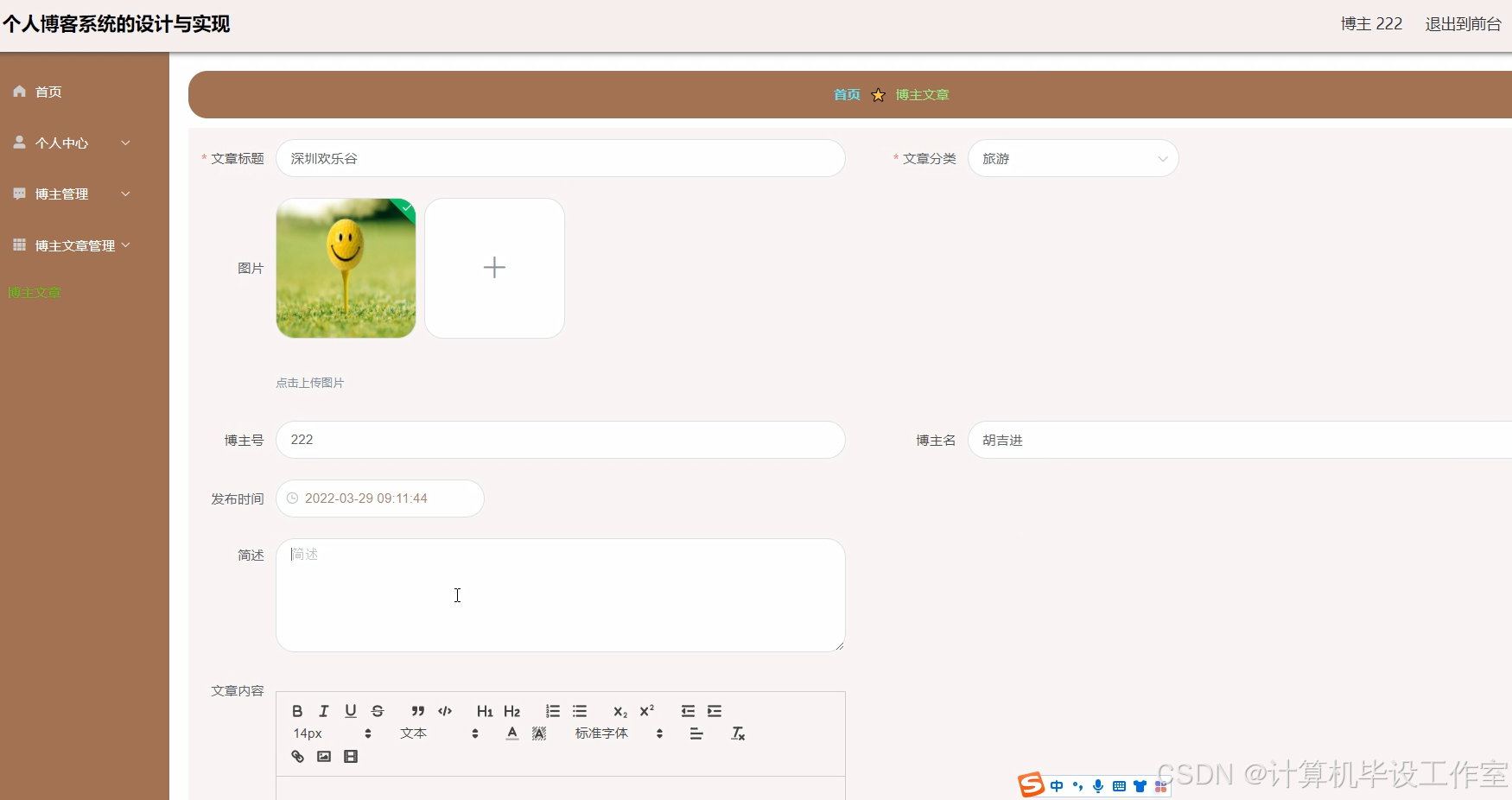 博主可以注册登录,修改个人信息,对自己发布的博主文章进行管理操作。