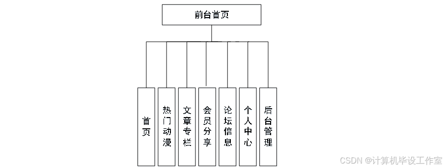前台首页页面:首页、热门动漫、文章专栏、会员分享、论坛信息、个人中心、后台管理,前台首页用例如图3-2所示。