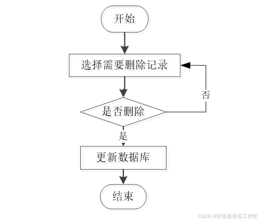 会员选择要删除的信息并单击Delete按钮。系统提示是否删除信息。如果会员想要删除信息,系统将删除信息。系统数据库删除信息。删除信息流程图如图3-5所示。
