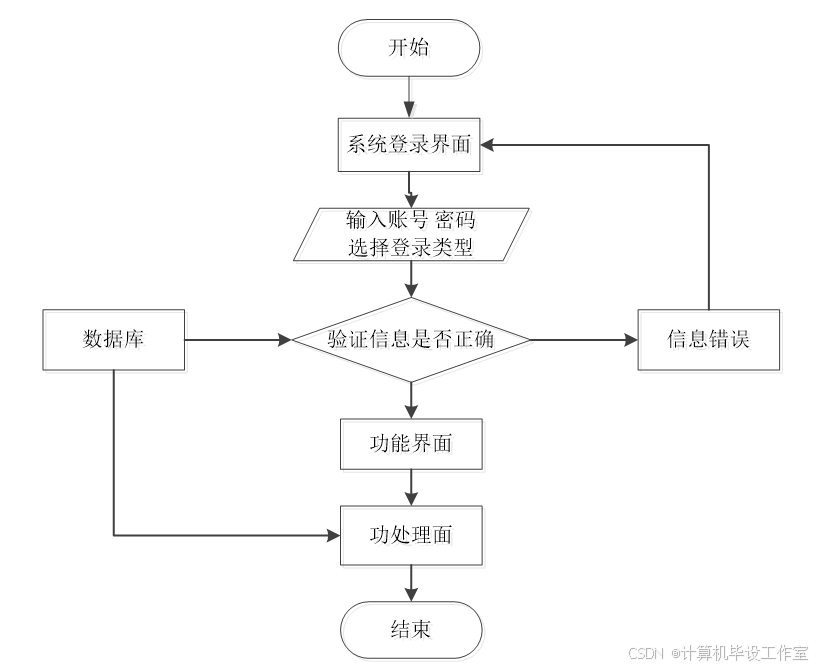 会员想进入系统,首先进入系统登录界面,通过正确的会员名、密码,选择登录类型登录,系统会检查登录信息,信息正确,然后输入相应的功能界面,提示信息错误,登录失败。系统操作流程如图3-3所示。
