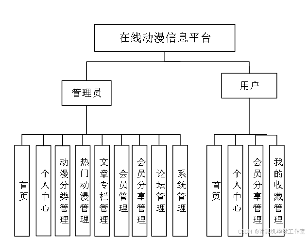 这些功能可以充分满足在线动漫信息平台的需求。此系统功能较为全面如下图系统功能结构如图4-4所示。