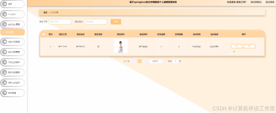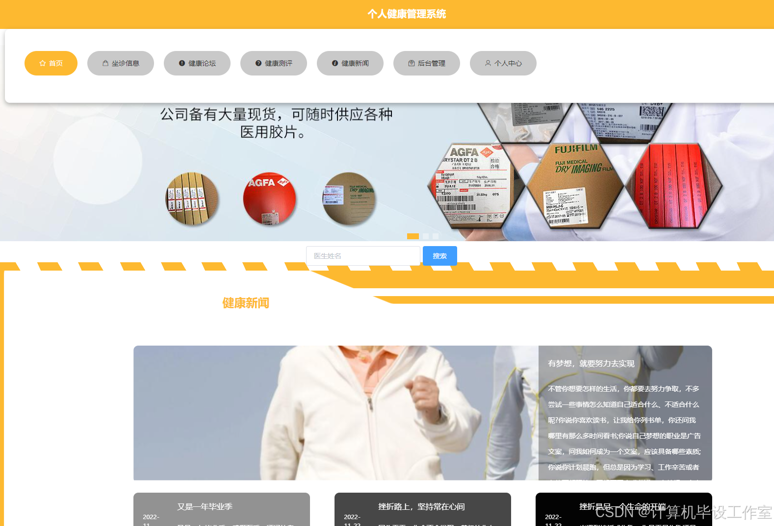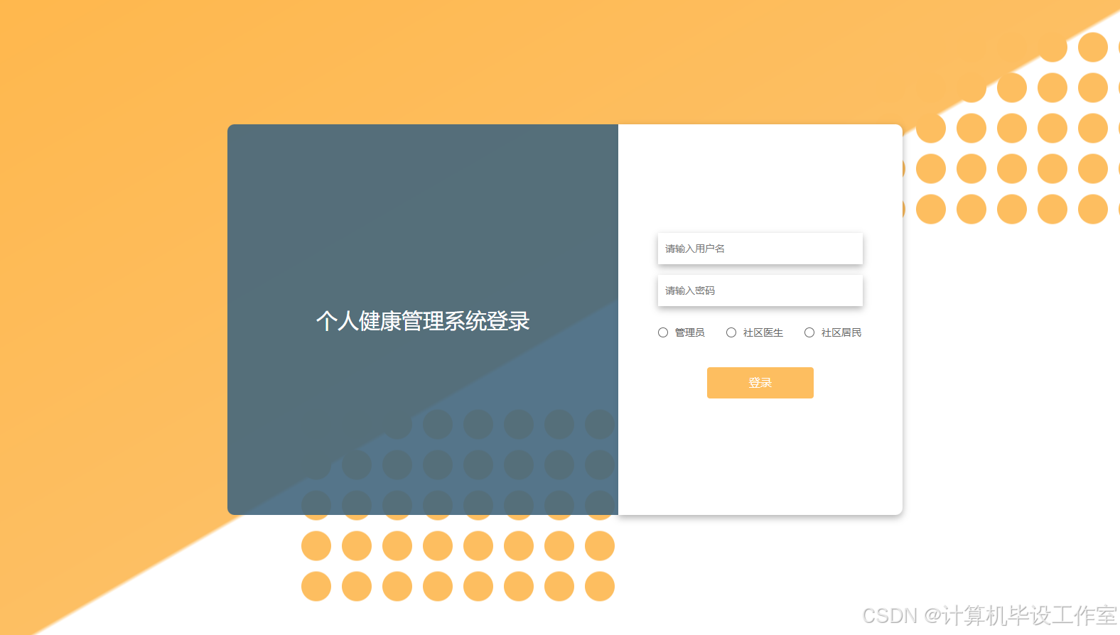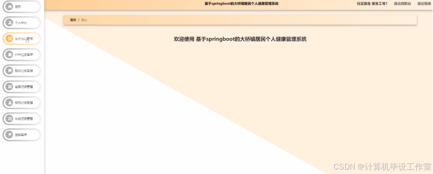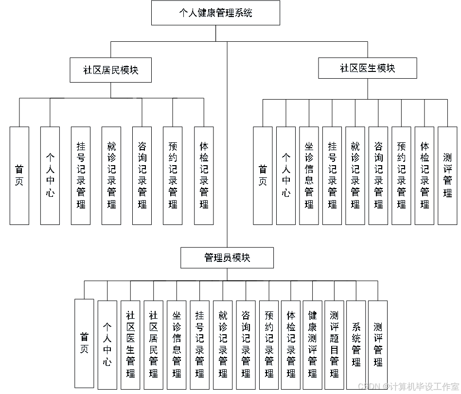 本课题要求实现一套个人健康管理系统,系统主要包括管理员模块和社区居民、社区医生模块。