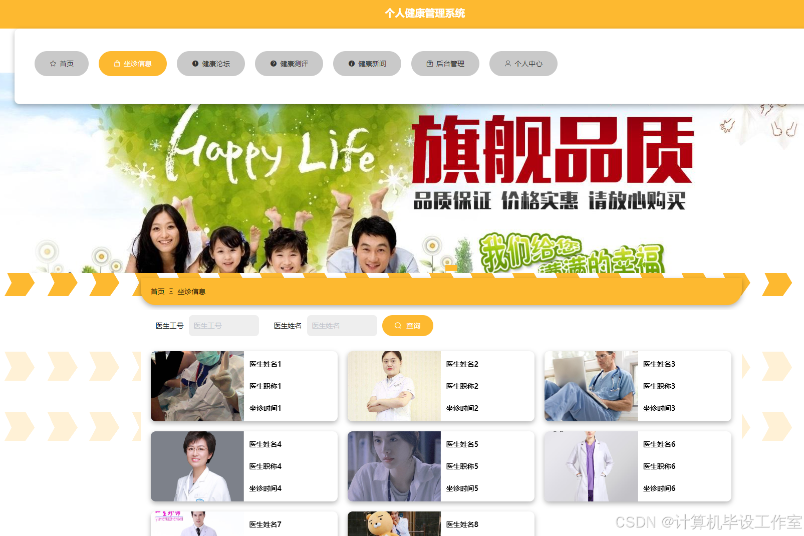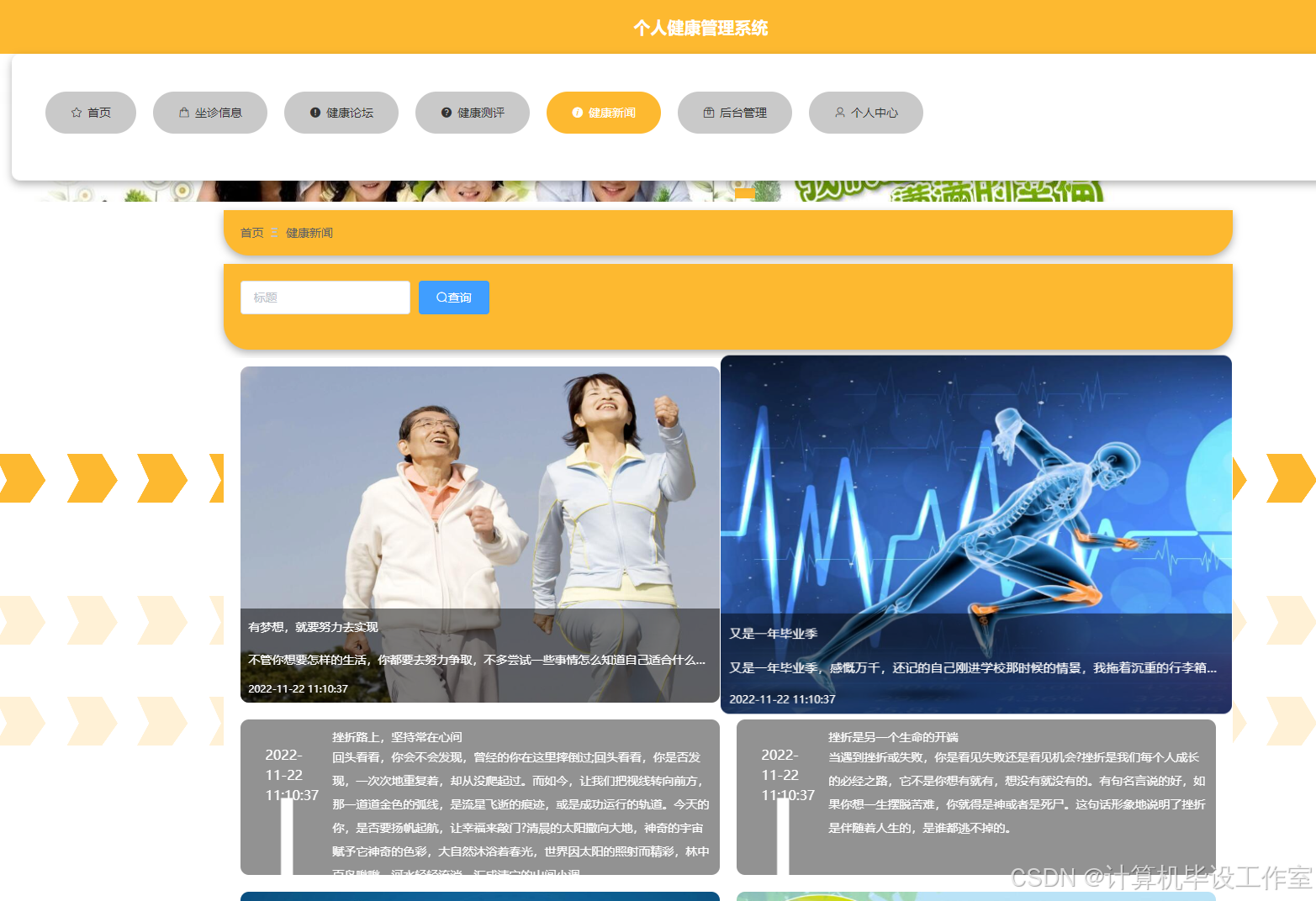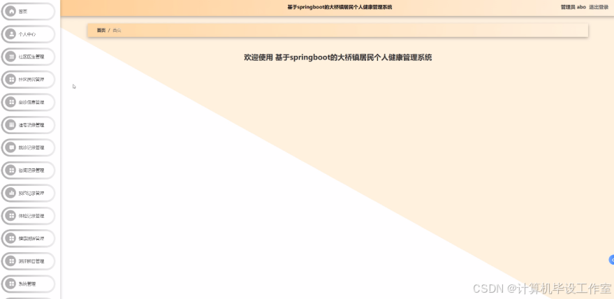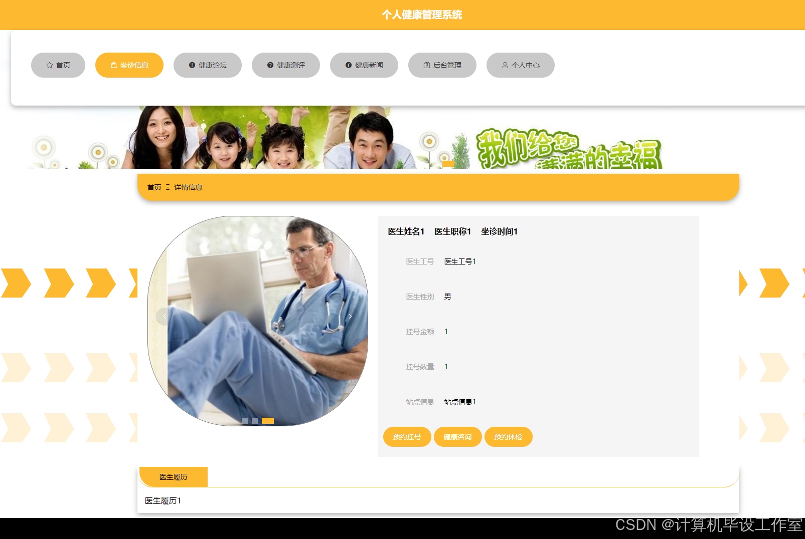 本课题要求实现一套个人健康管理系统,系统主要包括管理员模块和社区居民、社区医生模块。