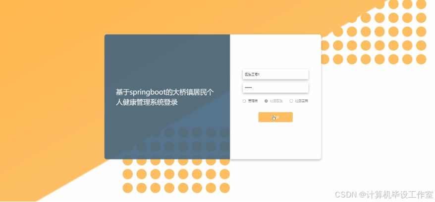社区医生登录,社区医生在登录页面通过填写用户名、密码,完成登录,如图5-15所示。
