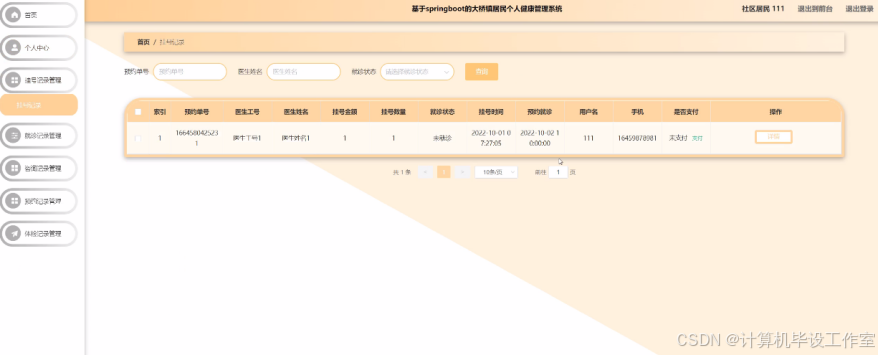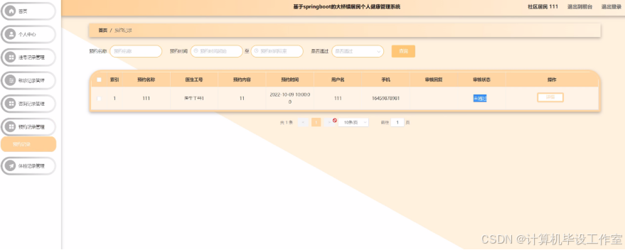(3)方便社区居民快速搜索挂号记录、预约记录;