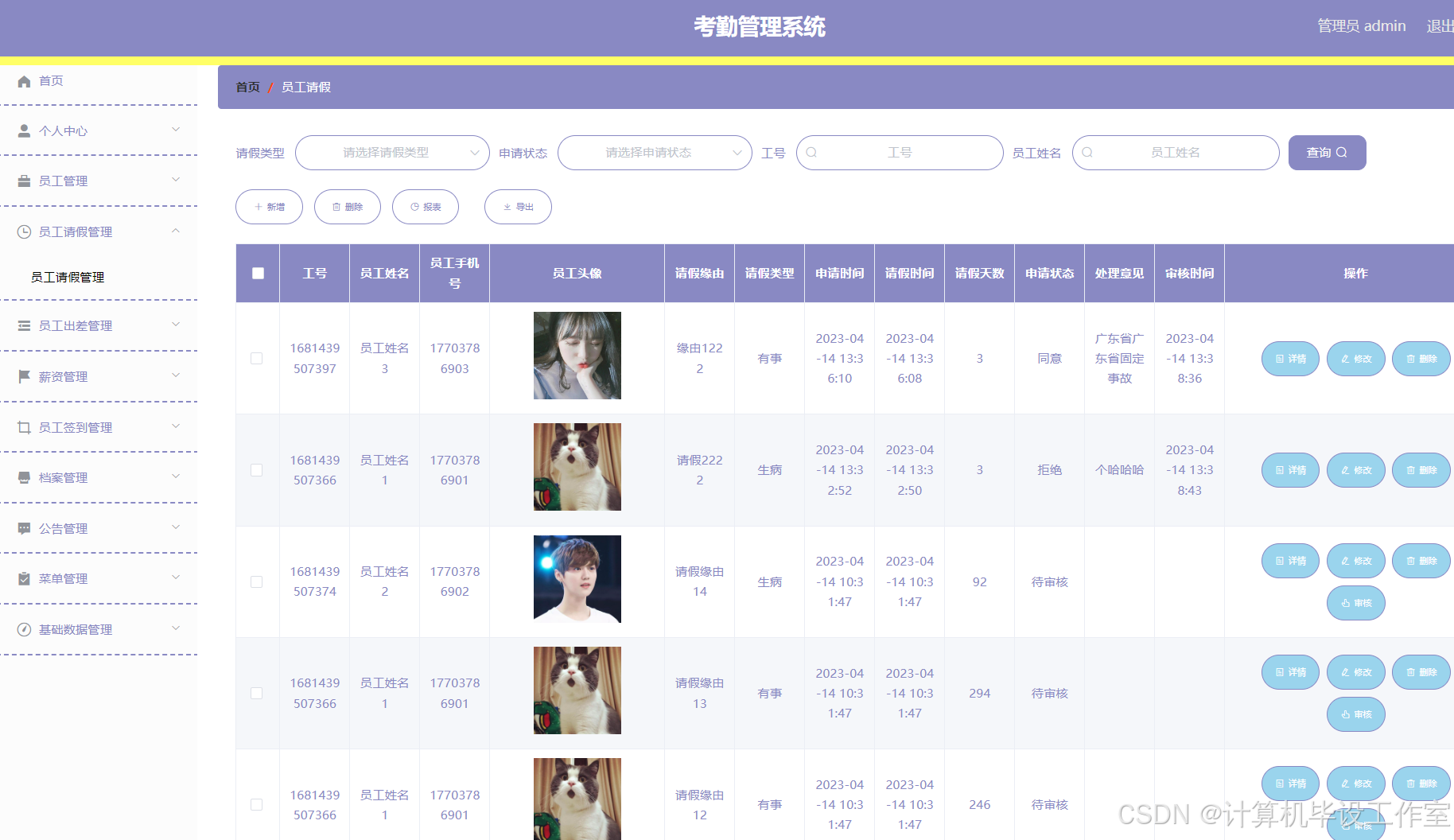 考勤管理系统(源码+数据库+毕业论文齐全)java开发springboot框架vue javaee javaweb项目,可做计算机毕业设计或课程设计
