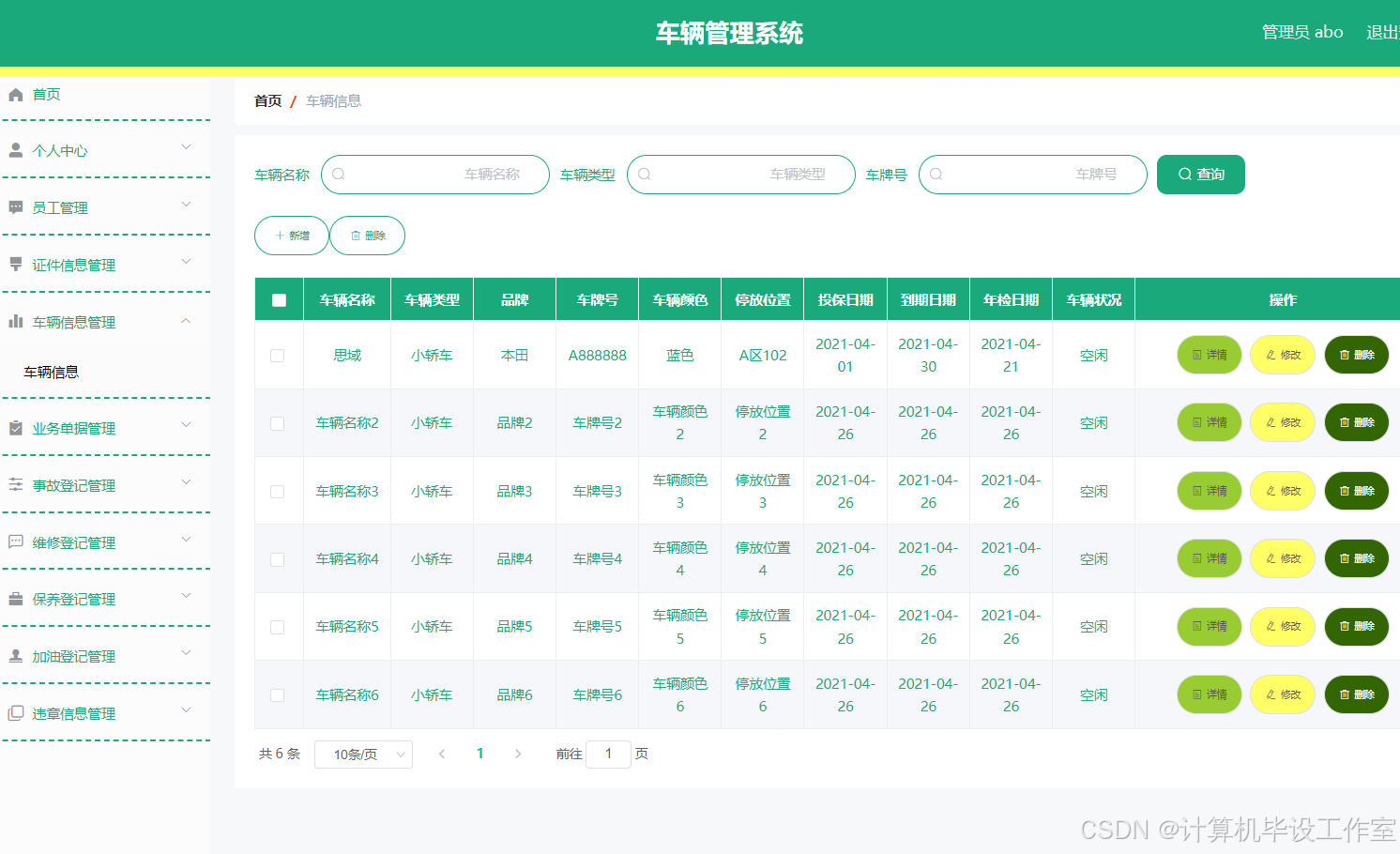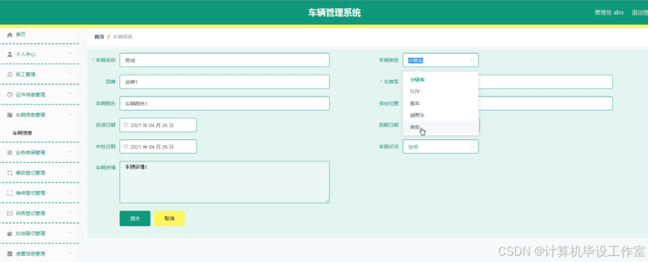 车辆管理系统(源码+数据库+毕业论文)java开发springboot+vue框架javaweb,可做计算机毕业设计或可成设计