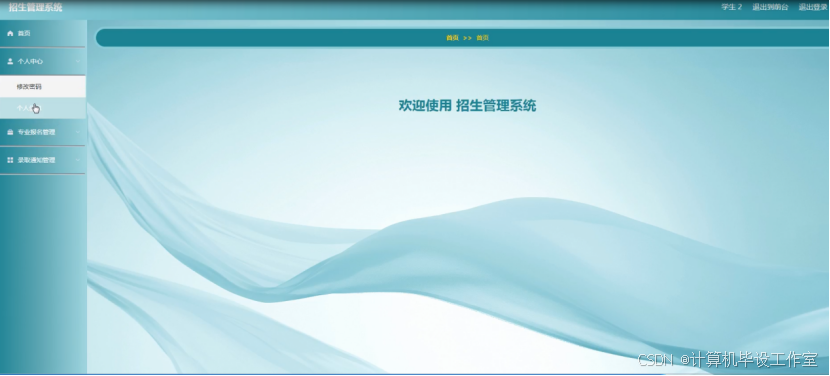 进入学生系统首页可以查看首页、个人中心、专业报名管理、录取通知管理等内容进行详细的操作,如图5-12所示。