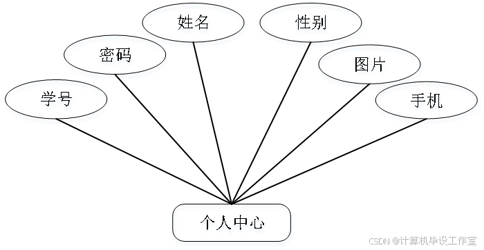 个人中心,在个人中心页面通过填写个人中心,学号、密码、 姓名、性别、图片、手机等内容进行更新信息等操作,如图5-4所示。