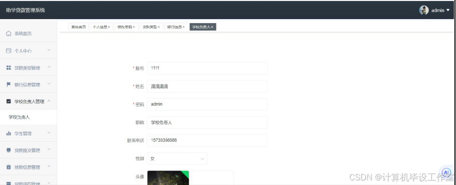 图4.8 贷款申请界面图(学校负责人)