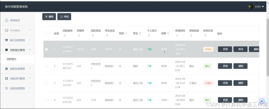 助学贷款管理系统(源码+数据库+毕业论文+ppt)java开发springboot+vue框架javaweb,可做计算机毕业设计或课程设计