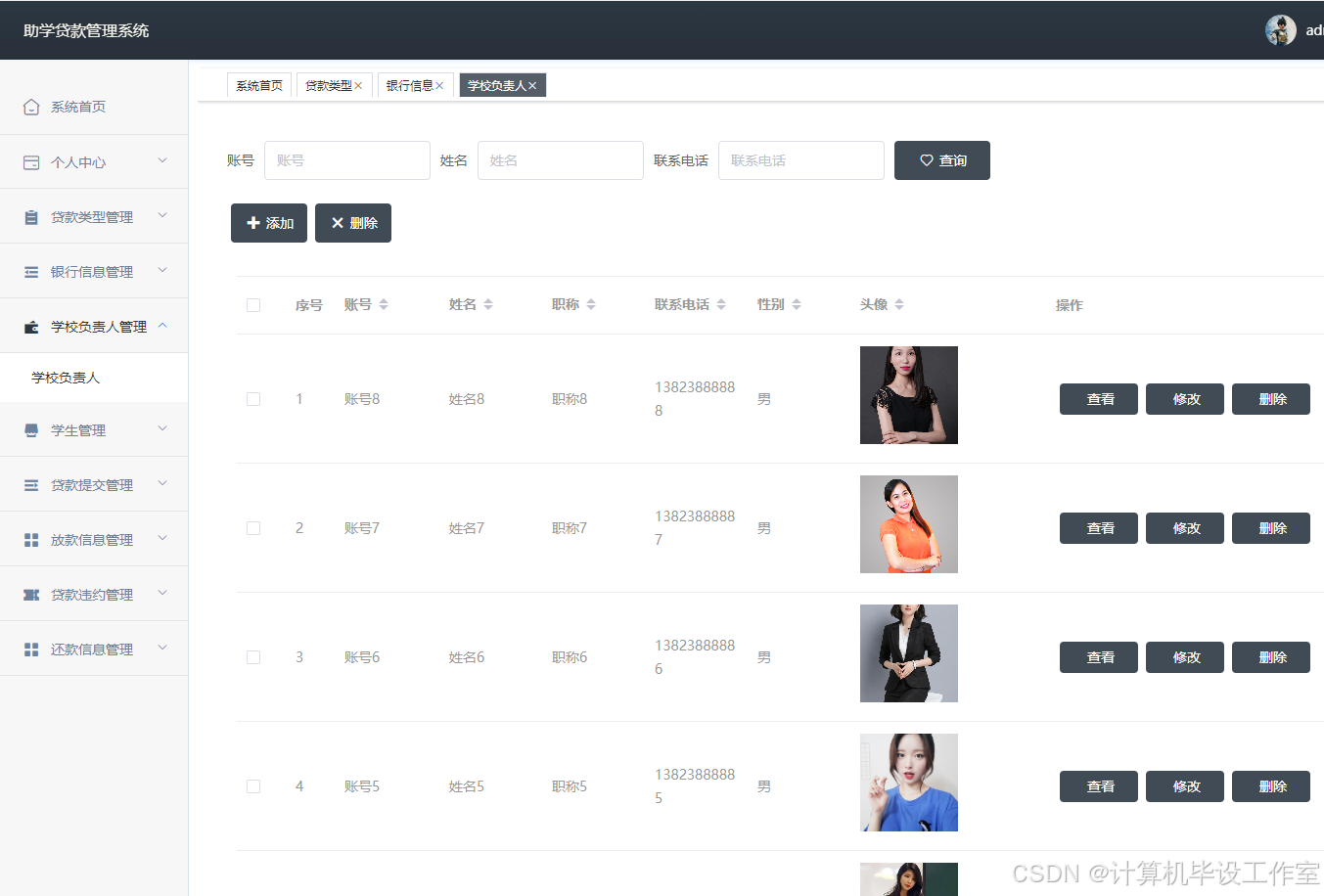 图4.3 学校负责人界面图