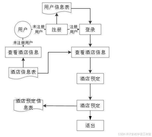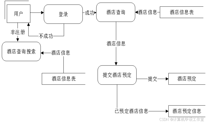 开发旅游团预约系统最主要的一个目的就是实现用户对酒店的预定,图2-4就是系统的数据流图。