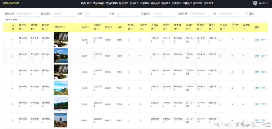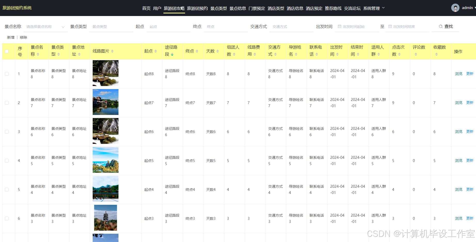 (1)旅游团攻略:管理员可以对旅游团攻略进行浏览、新增、移除、更新。