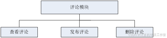 旅游团预约系统是一个交流性质的公开平台,用户在平台上提交评论,增加用户之间的互动性。但是同时也为了更好的规范评论的内容,给予管理员删除不合适的评论的功能,所以需要专门设计一个评论管理模块,具体的结构图如下: