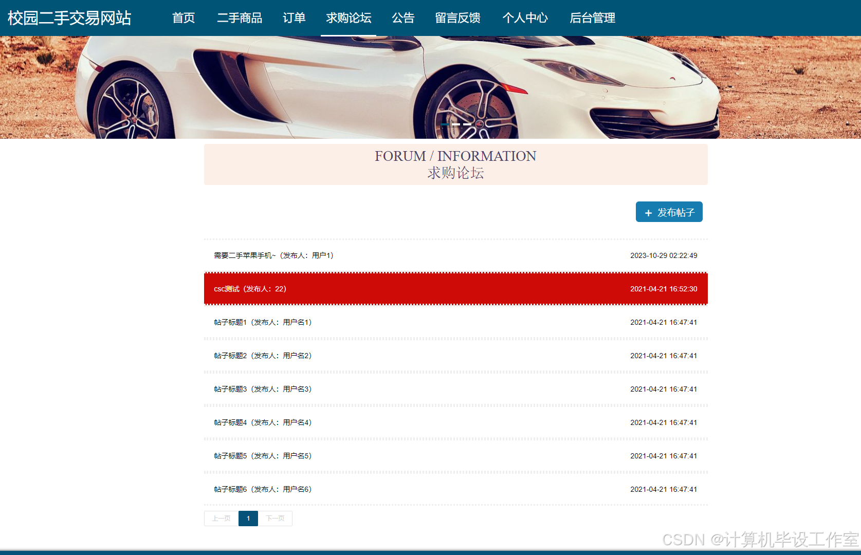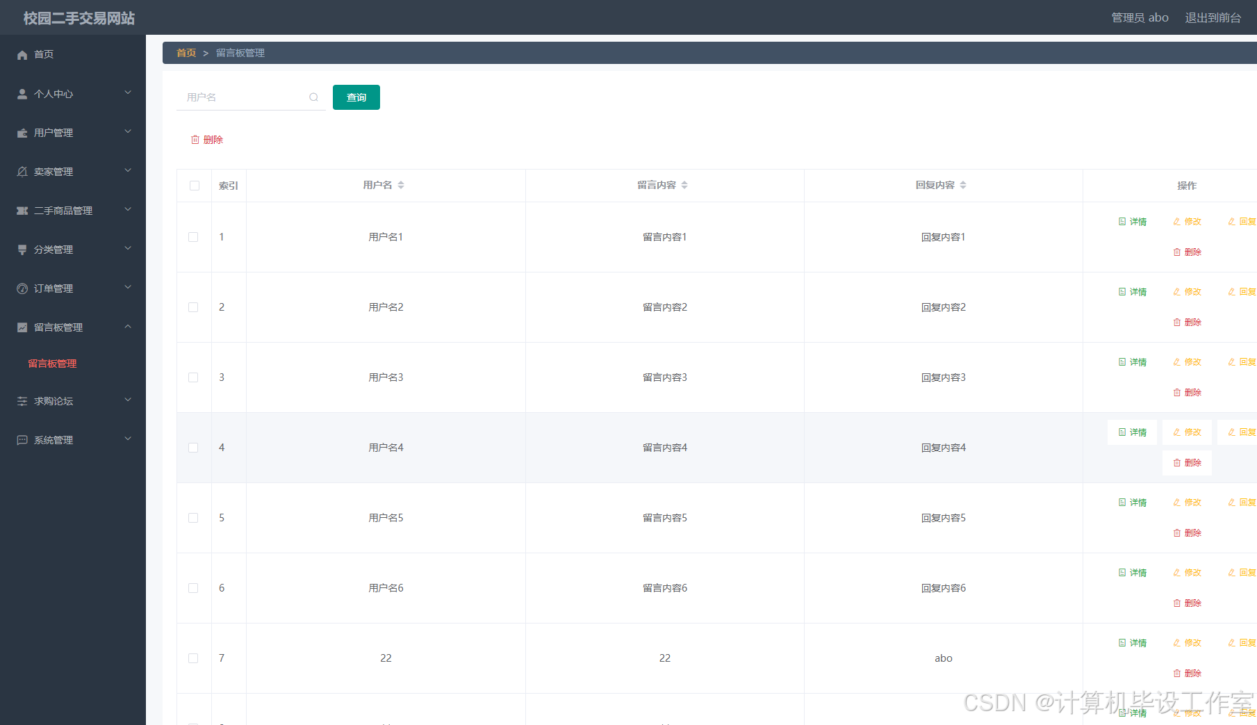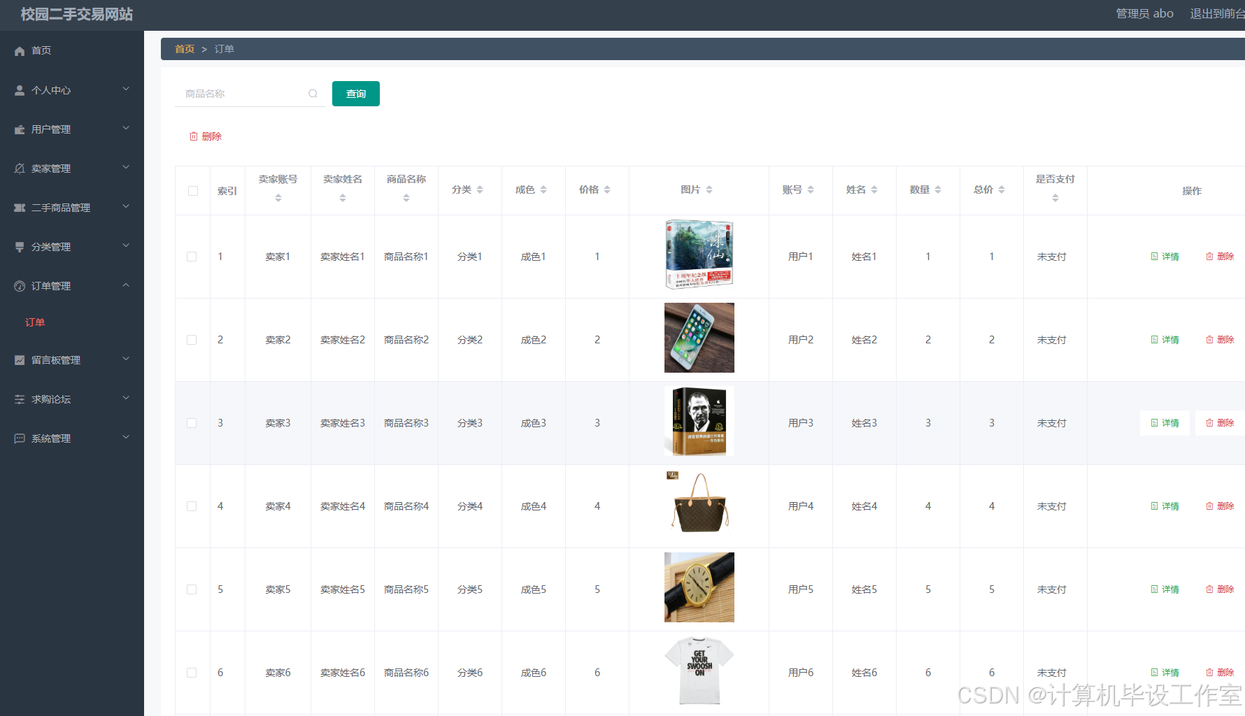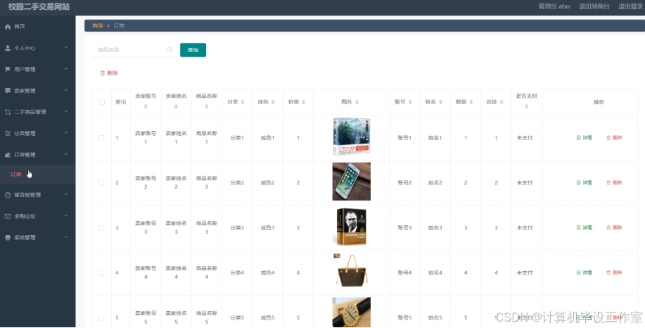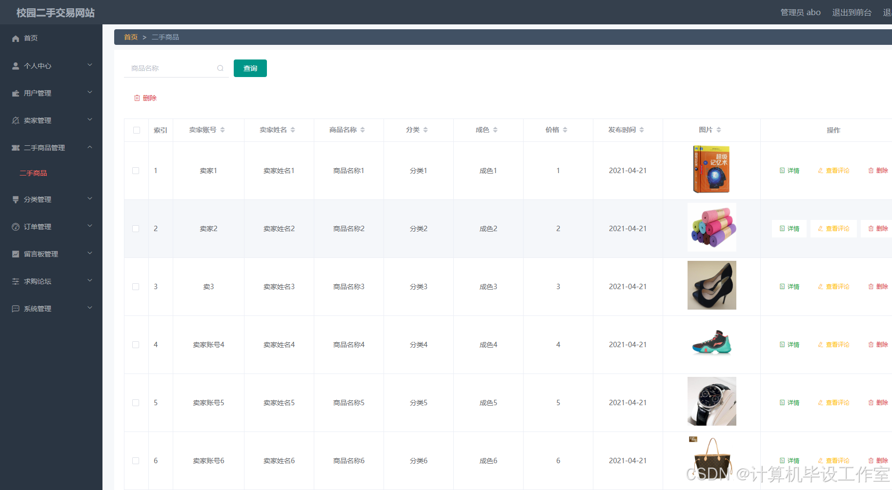 (2)平台管理员可以进行二手商品管理,用户管理,订单管理,论坛管理等功能。