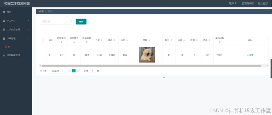 用户登录后,可以查看二手商品信息并且可以购买操作。界面如下图所示: