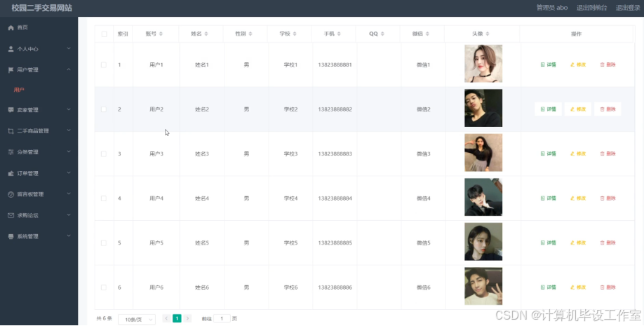 系统管理员可以对用户信息进行添加,修改,删除操作。界面如下图所示: