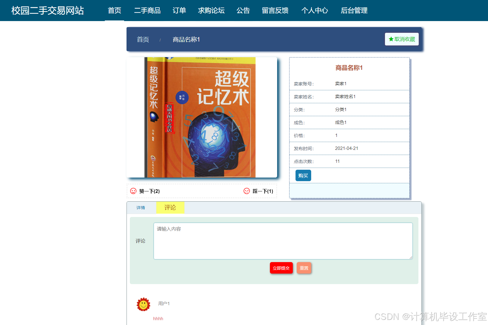 校园二手交易网站设计与实现(源码+数据库+毕业论文+答辩ppt)java+ssm+vue框架javaweb,可做计算机毕业设计或课程设计