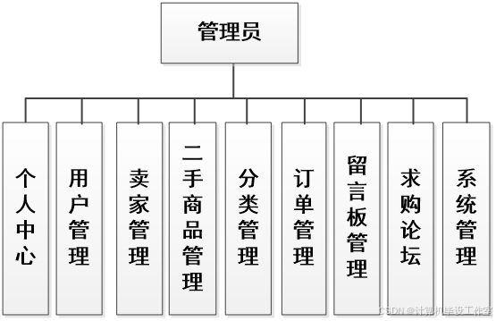 本系统是基于B/S架构的网站系统,设计的管理员功能结构图如下图所示: