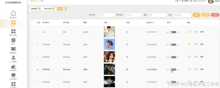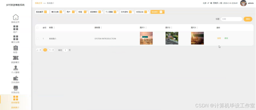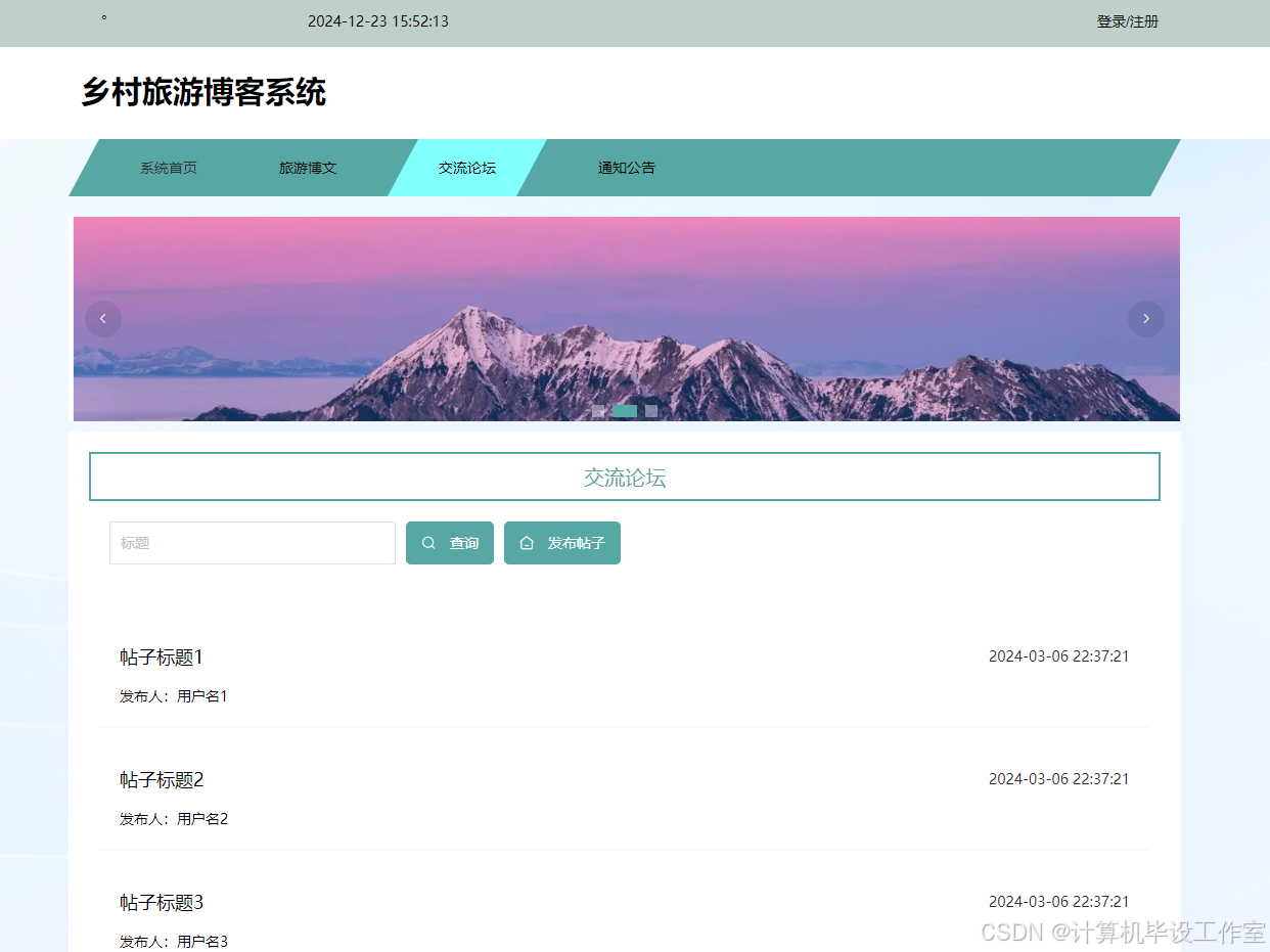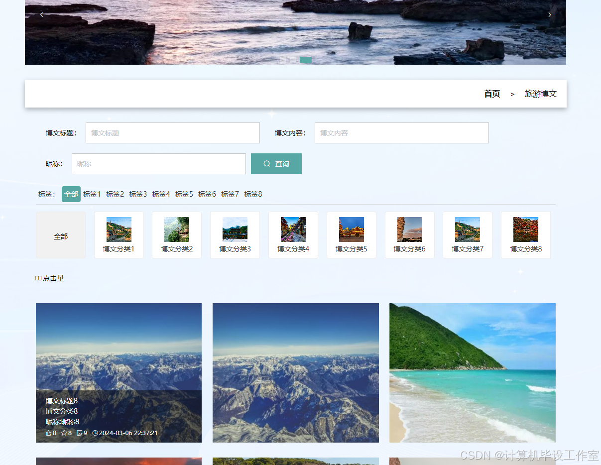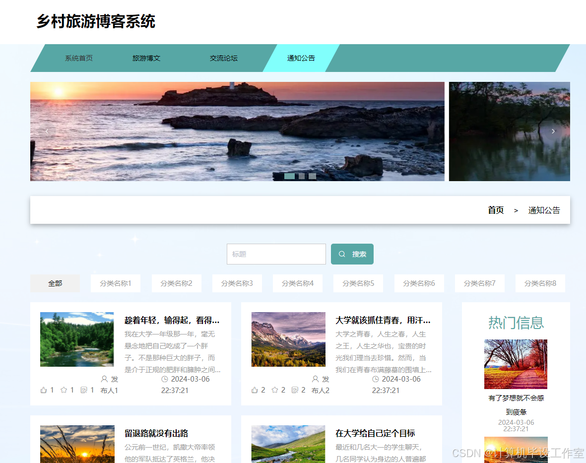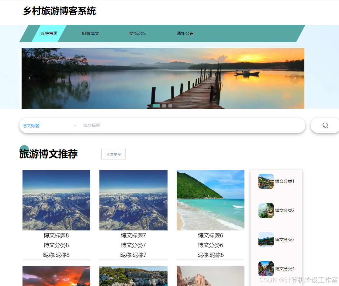 乡村旅游博客系统(源码+数据库+毕业论文+答辩ppt齐全)java开发springboot+vue框架javaweb,可做计算机毕业或课程设计