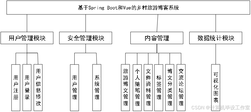 基于Spring Boot和Vue的乡村旅游博客系统的研究内容涵盖了多个方面,主要涉及到系统的架构设计、功能实现、用户体验以及技术选型等。