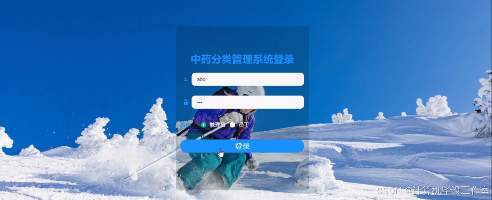此次开发的中药分类管理系统登录界面是我们最常见的一种登录窗口进行造成的,只需通过电脑就可以登录访问,没有那些复杂的登录过程。该中药分类管理系统主要是采用B/S结构、Java语言技术以及mysql数据库进行开发设计的,使得系统的开发更高效和稳定,也体现出来该系统的的现代化和规范化。员工可以轻松的进行学习,其系统主要特点就是易操作和易管理。