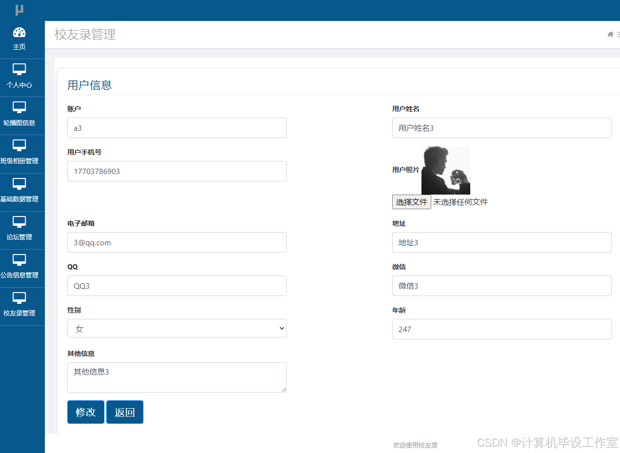 校友录系统(源码+数据库+毕业论文一整套齐全)java开发ssm框架jsp javaweb项目,可做计算机毕业设计或课程设计