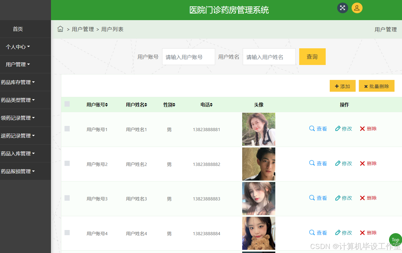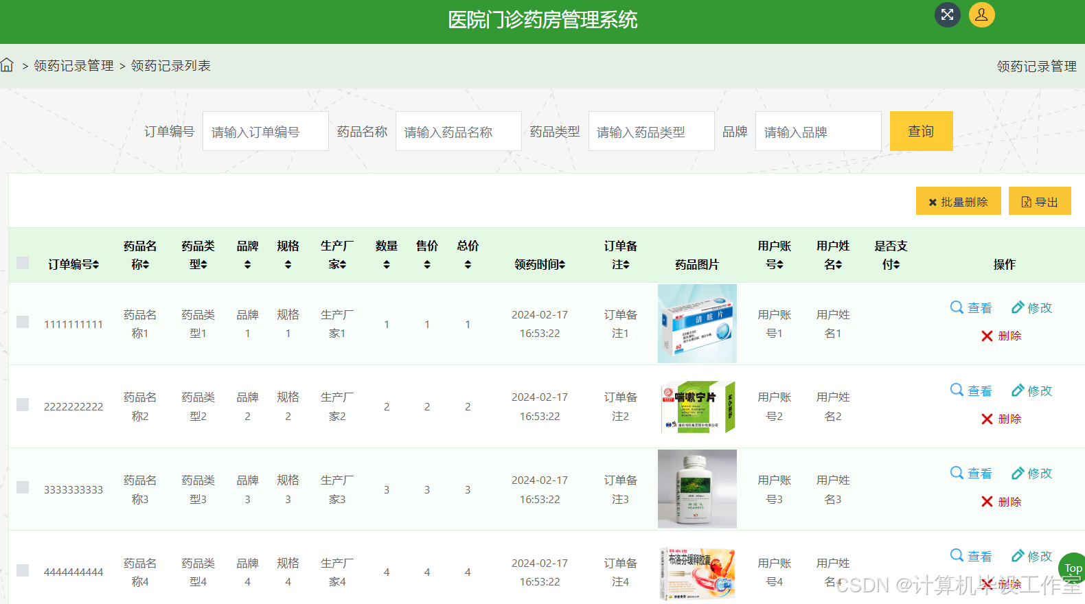 医院门诊药房管理系统(源码+数据库+毕业论文+答辩PPT一整套齐全)java开发ssm框架javaweb,可做计算机毕业设计或课程设计