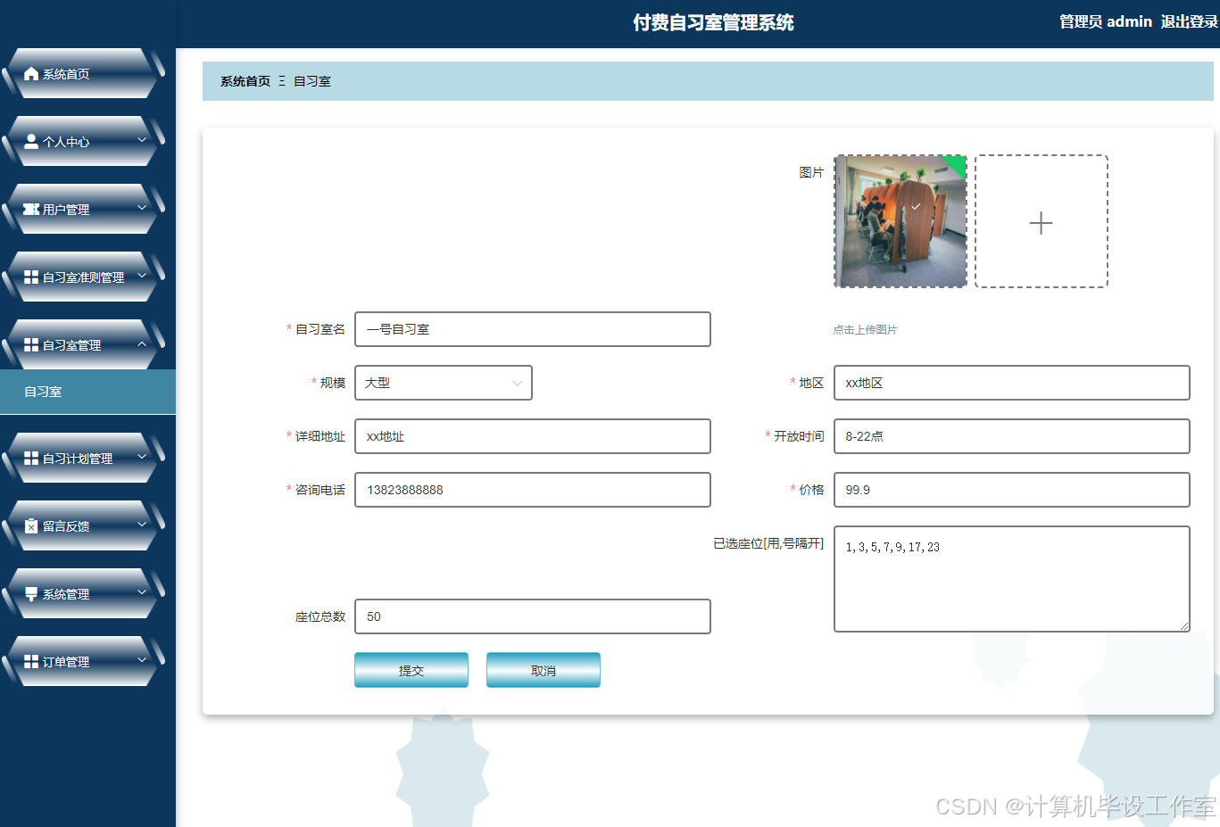 【附源码】付费自习室管理系统_共享自习室(源码+数据库+论文+PPT)java开发ssm框架javaweb,可做计算机毕业设计或课程设计