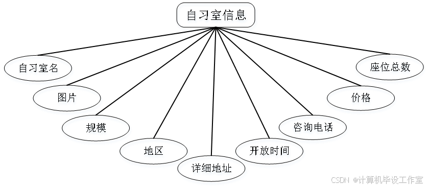 通过对付费自习室管理系统的主要功能信息进行规划并分为若干功能实体信息,本系统的主要功能实体E-R图如图4-7、图4-8、图4-9、图4-10。