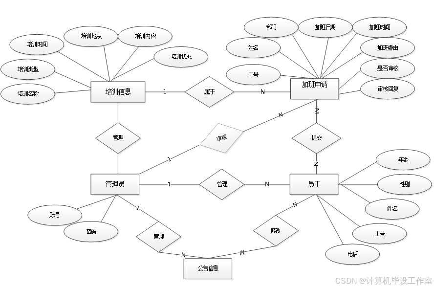 图4-3基于SSM人力资源管理系统分析设计与实现实体属性图