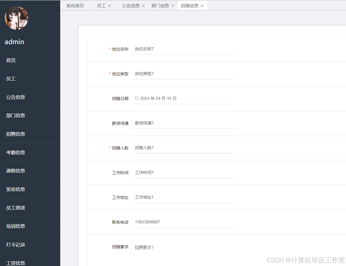 【附源码】人力资源管理系统(源码+数据库+毕业论文+答辩ppt齐全)java开发ssm+vue框架javaweb,可做计算机毕业设计或课程设计