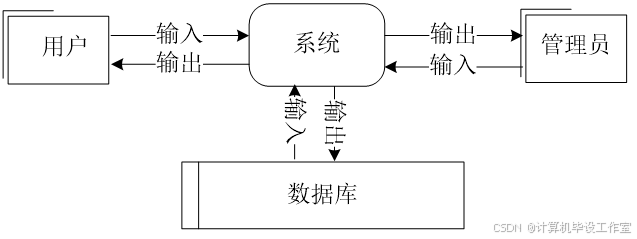 对系统的数据流进行分析,系统的使用者分为二类,一般用户,管理员。系统主要对界面信息传送,登录信息的验证,注册信息的接收,用户各种操作的响应做处理。