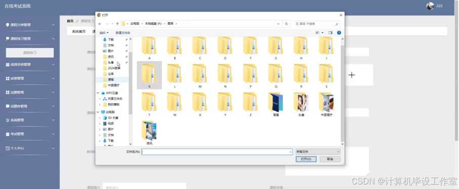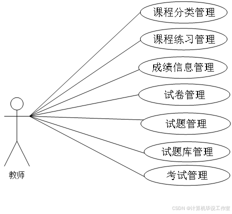 (2)教师功能:课程信息管理、试卷管理、学生成绩管理、试题管理以及导出、自动组卷、考试管理、成绩图表统计等功能