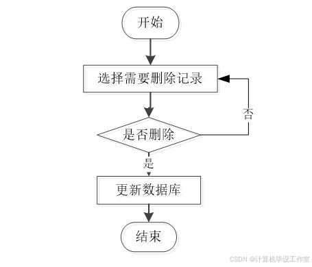 管理员可以对公告信息进行信息的删除,对要删除的信息进行选中后,点击删除按钮,系统会询问是否确定,若点击确定,则系统会删除掉选中的信息,并在数据库内对信息进行删除,删除信息流程图如图2-6所示。
