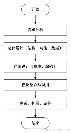 基于springboot的大学生心理健康管理系统开发时,首先进行需求分析,进而对系统进行总体的设计规划,设计系统功能模块,数据库的选择等,本系统的开发流程如图2-1所示。