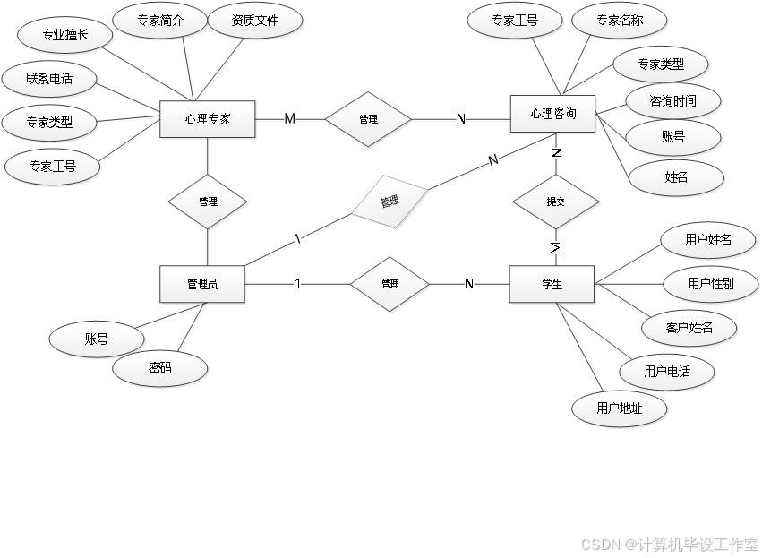 用户分类:根据用户的身份和需求,将用户分为学生、教师和心理专家等不同分类,以便系统能够提供个性化的服务。