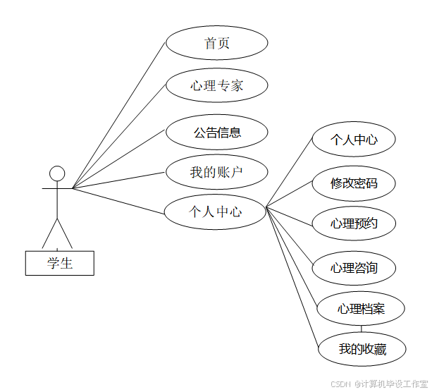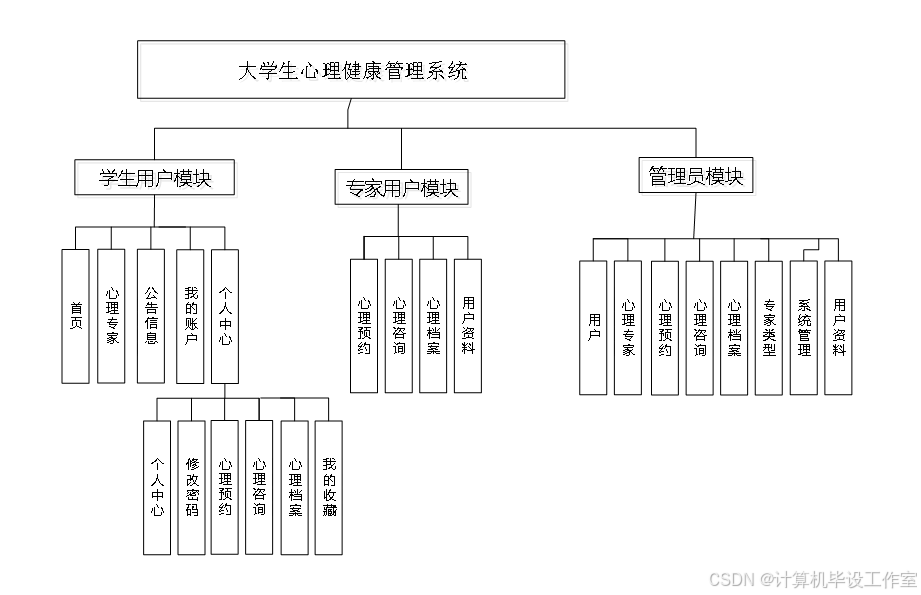 通过以上功能分析,我们可以设计出满足各类用户需求的大学生心理健康管理系统,提供便捷、高效、专业的心理健康服务。